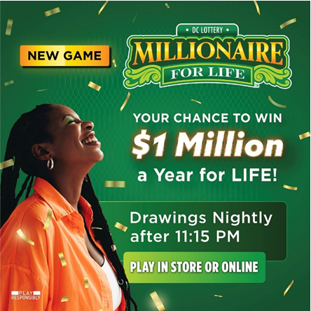 “With daily chances to become an instant millionaire, significantly better odds at the top prize than other national draw games, and knowledge that their ticket is also giving back to the District, Millionaire for Life gives our players a million reasons to play,” said DC Lottery Executive Director Randy Burnside.