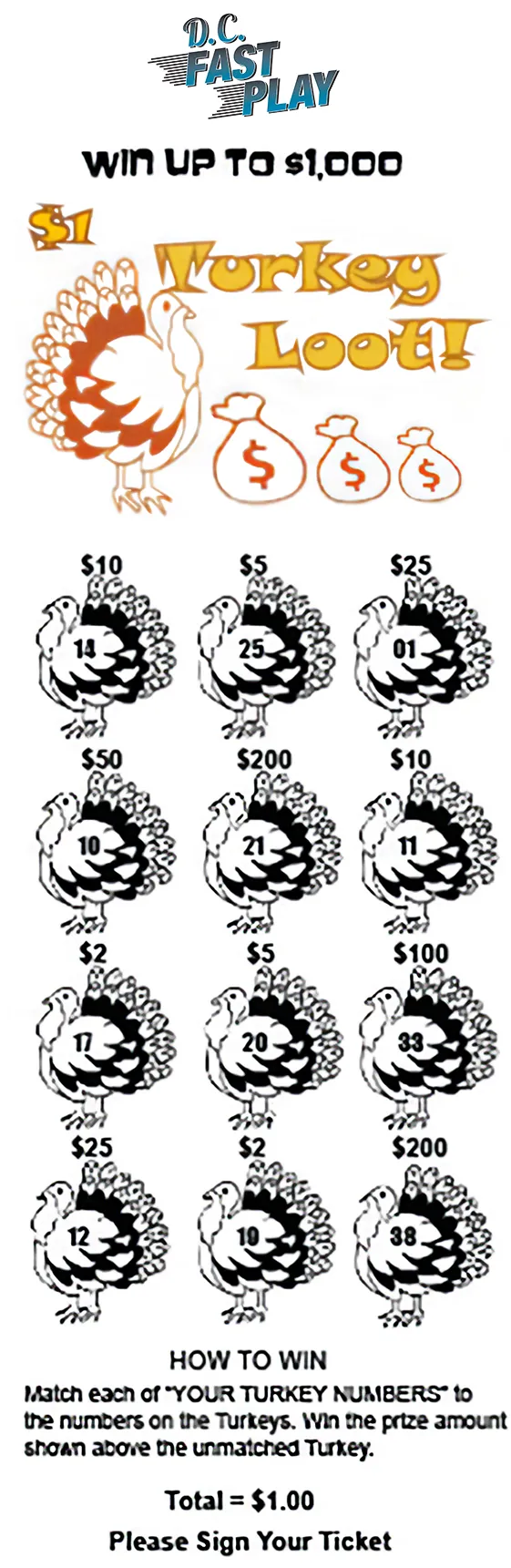 - Fast Play $1 Turkey Loot tickets will expire 180 days from the date of purchase.