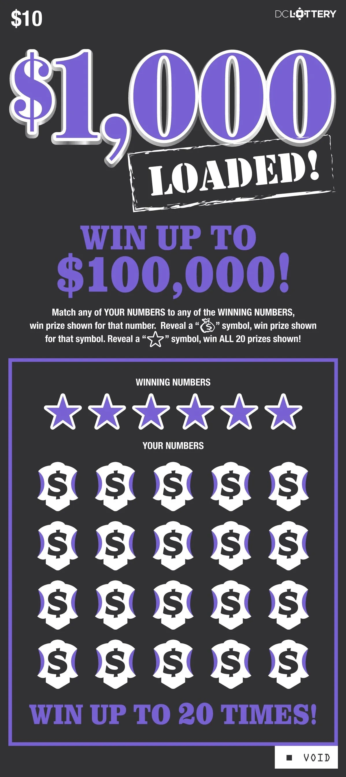 Match any of YOUR NUMBERS to any of the WINNING NUMBERS, win prize shown for that number. Reveal a "BAG OF CASH" symbol, win prize shown for that symbol. Reveal a "STAR" symbol, win ALL 20 prizes shown!