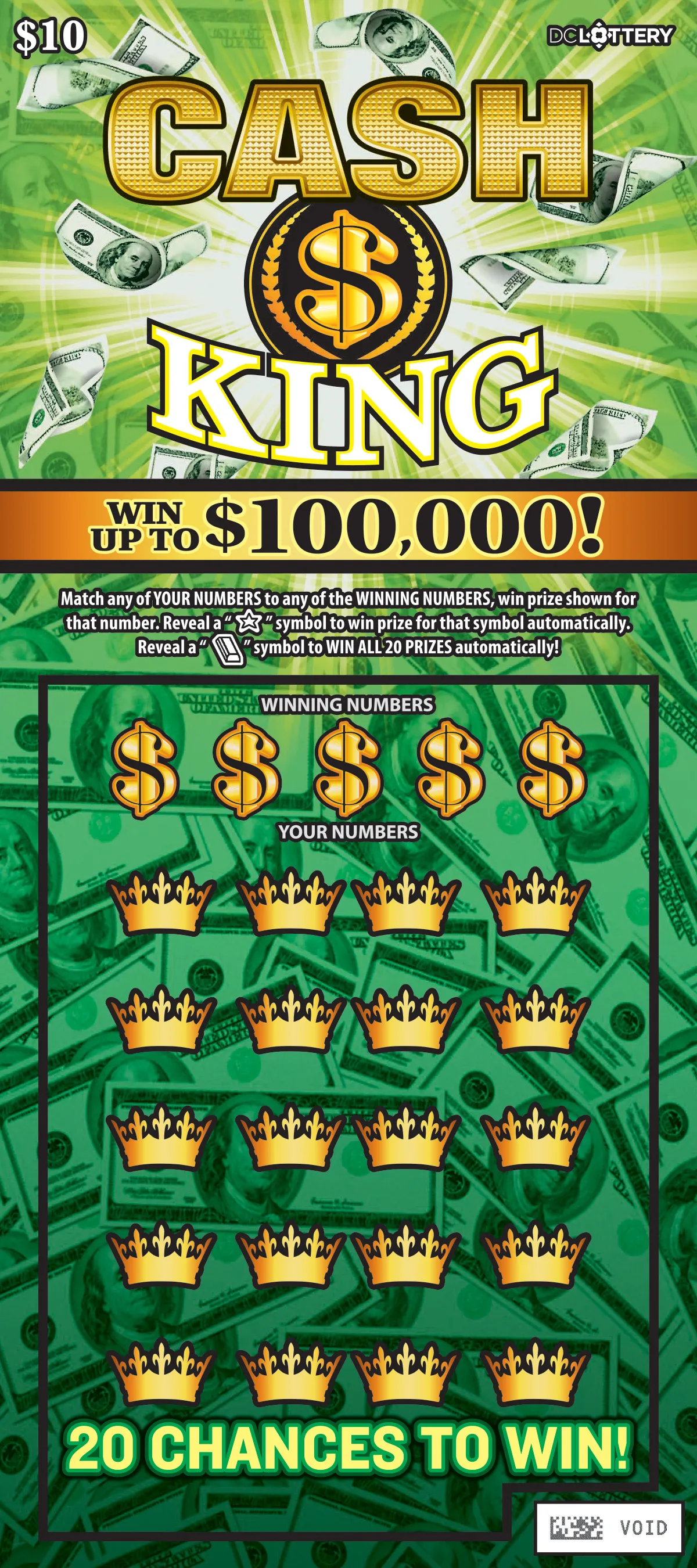 Match any of YOUR NUMBERS to any of the WINNING NUMBERS, win prize shown for that number. Reveal a "STAR" symbol to win prize for that symbol automatically. Reveal a "BAR" symbol to WIN ALL 20 PRIZES automatically!