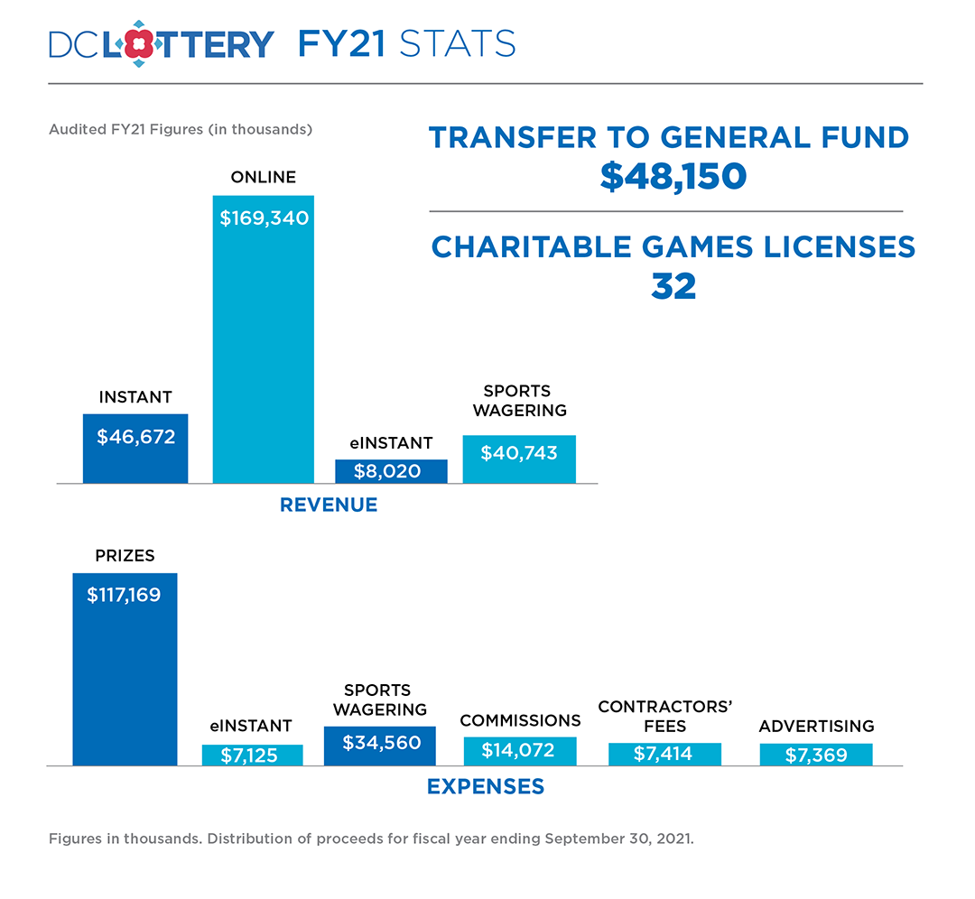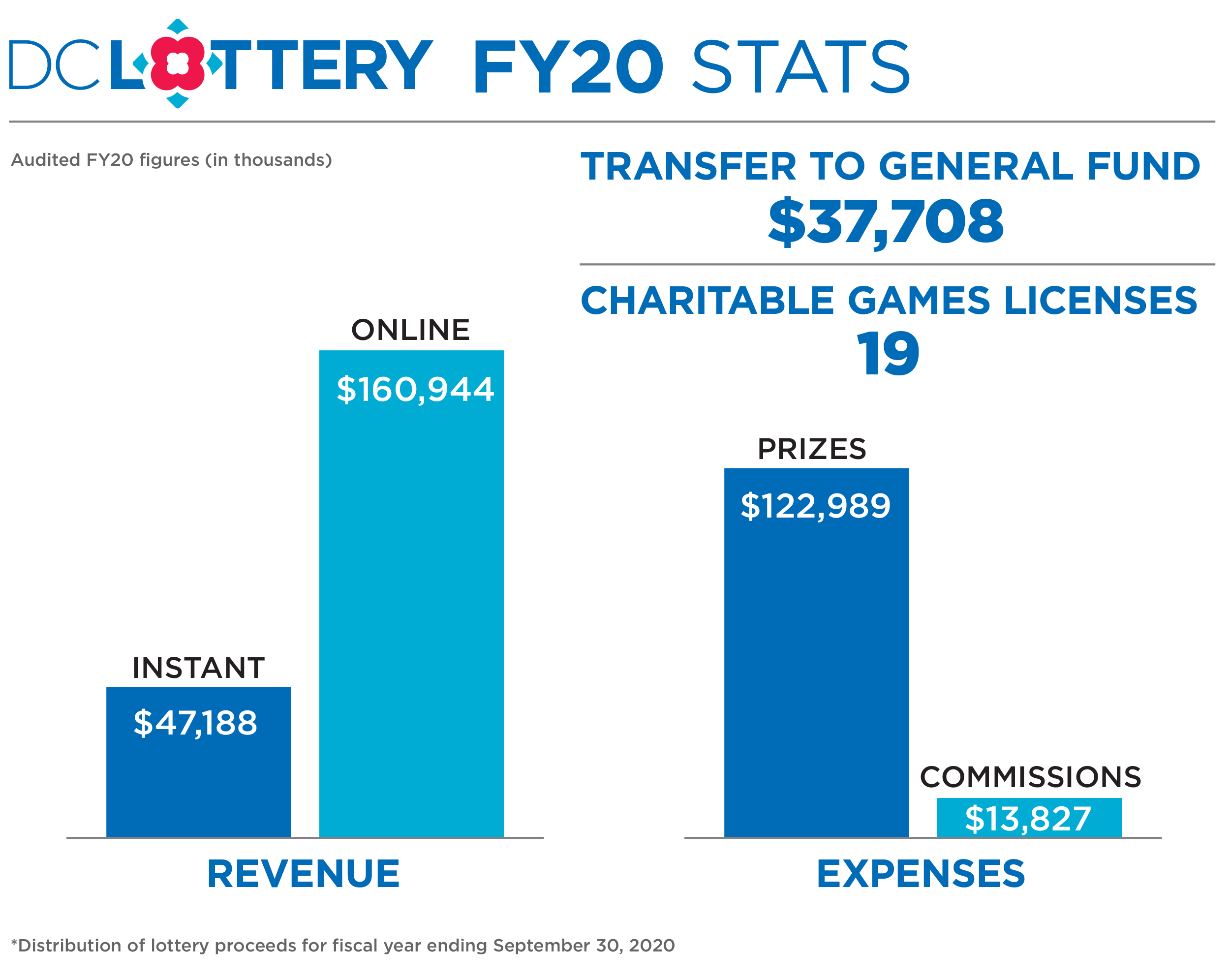 The DC Lottery's annual transfer to the General Fund remains a vital component in aiding the city's economy, thereby benefiting all residents of the District of Columbia, as well as suburban commuters and tourists. The General Fund supports essential services such as education, recreation and parks, public safety, housing, senior, and child services. The DC Lottery directly benefits our players by paying out more than 50 percent of annual sales in prize money, which totals more than $4.8 billion to date. We also directly benefit local businesses by providing commissions to retailers licensed to sell DC Lottery games and offering contracting opportunities.